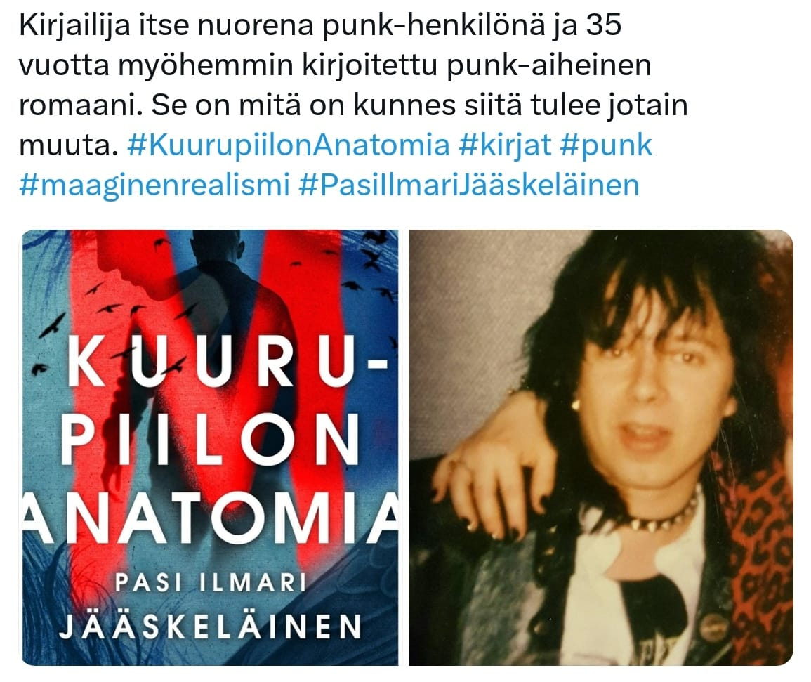 Viides romaanini Kuurupiilon anatomia (Atena 2023) julkaistaan kuluvan vuoden elokuussa. Tarina sijoittuu Marrasvirran kaupunkiin, johon sijoittui myös edellinen romaanini Väärän kissan päivä (Atena 2017), joskin tällä kertaa liikutaan erilaisissa kuvioissa, kaupungin yönaakoiksi kutsuttujen niittitakkipunkkareiden keskuudessa.